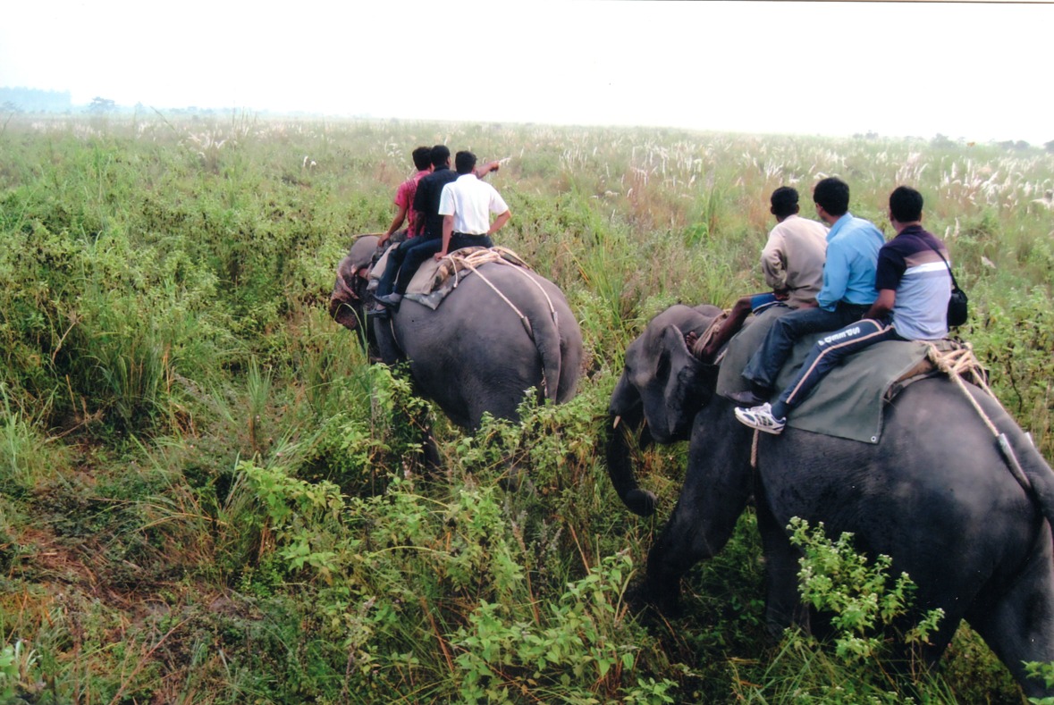 জঙ্গলের হিংস্র জন্তুদের নিয়ে খেলা দেখানো হত । বাঘ, সিংহ, হাতি, ঘোড়া, জেব্রা, জলহস্তি, ম্যাকাও - অবাক চোখে তাকিয়ে থাকতাম । ছবির বইয়ের পাতা থেকে উঠে আসত ওরা, উঠে আসত জঙ্গলের গল্প থেকে। কয়েক ঘণ্টা যেন পেরিয়ে যেত স্বপ্নের মতো , আবার সেই স্বপ্নের ঘোর এতদিন পরে । বক্সাদুয়ার অঞ্চলে কয়েকটা দিন ছিলাম। অসাধারণ রূপ বন্য প্রকৃতির। বক্সা টাইগার রিজার্ভের পশ্চিম বাফার অঞ্চলে বয়ে গেছে রায়মাটাং নদী । দুই পাড়ে ঘন সবুজ অরণ্য । তার মাঝেই সরল সুন্দর ছোট্ট একটি গ্রাম । নদীর নামেই নাম । ভূটান পাহাড়ের কোলে মেঘের আনাগোনা। শাল- সেগুন- শিরীষ- গামারের ঘন জঙ্গল । নদীর কোলে আশ্বিনের কাশের বন , হাজারো পাখির ডাক , ঝিঝি ডাকা সন্ধ্যায় ' হাতিমহলের' কাঠের বারান্দায় বসে উপভোগ করা বনজ্যোৎস্না, চিক চিক শব্দ করে গাছের ডালে ছুটে বেড়ানো কাঠবিড়ালি , হঠাৎ ছুটে চলে যাওয়া বেজির দল , রাতের নিস্তব্ধতা ভেঙে দেওয়া ময়ূরের তীক্ষ্ণ স্বর , সবই আঁকা হয়ে যায় মনের গভীরে । জয়ন্তীকে কি ভোলা যাবে কোনোদিন ? বন – পাহাড়ের কোলে বইছে জয়ন্তী নদী । সাদা - কালো - বাদামী নুড়ি পাথরের উপর দিয়ে বয়ে যায় স্ফটিক স্বচ্ছ জল । কত যে পাখি , সবুজ লাল বাঁশপাতি , ছাই সাদা পালকের লেজ নাচানো খঞ্জনা , হলুদ ঠোটের ধনেশ , বাদামী - সাদা লম্বা লেজের হাঁড়িচাচা , হলদে - সবুজ হরবোলা , ধূসর পাটকিলে ঘুঘু , শাহ্ বুলবুল , দোয়েল , ফিঙে , বন-টিয়া - পক্ষী প্রেমিকদের স্বর্গরাজ্য এই জয়ন্তী । দুপুর গড়িয়ে গেলেই বনতলী আধো অন্ধকার । গাছের মগডালে সবুজ চন্দ্রাতপে শেষ বিকেলের কমলা রঙটা ফিকে হতে হতে হারিয়ে যায় । নদীর দুই পাড়ের ধূসর সবুজ বন , জয়ন্তীর জলে আছড়ে পড়া রুপোলী চাঁদ , অস্পষ্ট ভুটান পাহাড়ের কুয়াশা , ভেঙে যাওয়া পুরনো ব্রিজটা , দুর থেকে ভেসে আসা ঘণ্টা পোকার আওয়াজ , বাঘ - হাতির ভয় , রাতচরা পাখির ডাক , নিসর্গ পাগল মন - সব যেন মিলেমিশে একাকার হয়ে যায় । ঝোপের অন্ধকারে জোনাকি জ্বলে । হাতিপোতা , জয়ন্তী থেকে বেশি দুরে নয় । দুয়ারসের প্রথম হাতির দল ঐখানেই দেখি । পুকরি পাহাড়ে উঠলে বকসাদুয়ারের অরণ্য অঞ্চলটার একটা দারুণ ছবি পাওয়া যায় । যে দিকে তাকাও শুধুই সবুজ । বক্সা থেকে লাটাগুড়ি হয়ে গরুমারা । লাটাগুড়িতে রাত্রি কাটান অনেকেই । অভয়ারণ্যে ঢোকার প্রধান প্রবেশপথ এটাই । সকাল- বিকেল জীপ সাফারির ব্যবস্থা আছে । আমরা চলে এসেছিলাম গোরুমারা ইকো ভিলেজ । কালিপুর ইকো ভিলেজ হিসেবেই পরিচিতি বেশী । গরুমারা জাতীয় উদ্যানের মধ্যে এই জায়গাটি জলপাইগুড়ি বনদপ্তরের তত্তাবধানে পরিচালিত হয় । মুর্তি , ডায়না আর জলঢাকা- তিনটি নদীর সঙ্গম এখানে । জঙ্গল লাগোয়া চারটে ছবির মতো সুন্দর কটেজ ।একটু হাঁটলে চা বাগান । সুদৃশ্য খড়ের ছাউনি দেওয়া কাঠের ঘরগুলি মাটি 